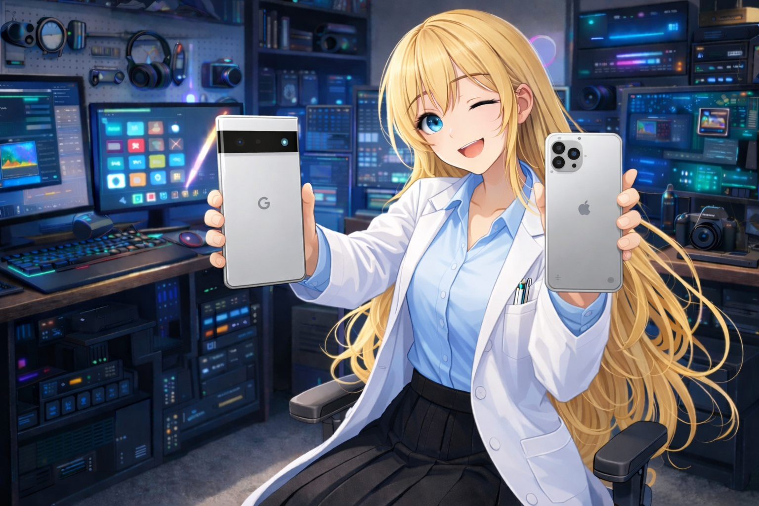 エルマ:「スマホを買う時に一番悩むのが『iPhoneとAndroid、どっちにしよう?』って問題だよね!永遠の対立だと思うけど、今日はスマートフォン・ラボらしく、両者を徹底的に比べてみたよ。自分に合った方がきっと見つかるはず!」